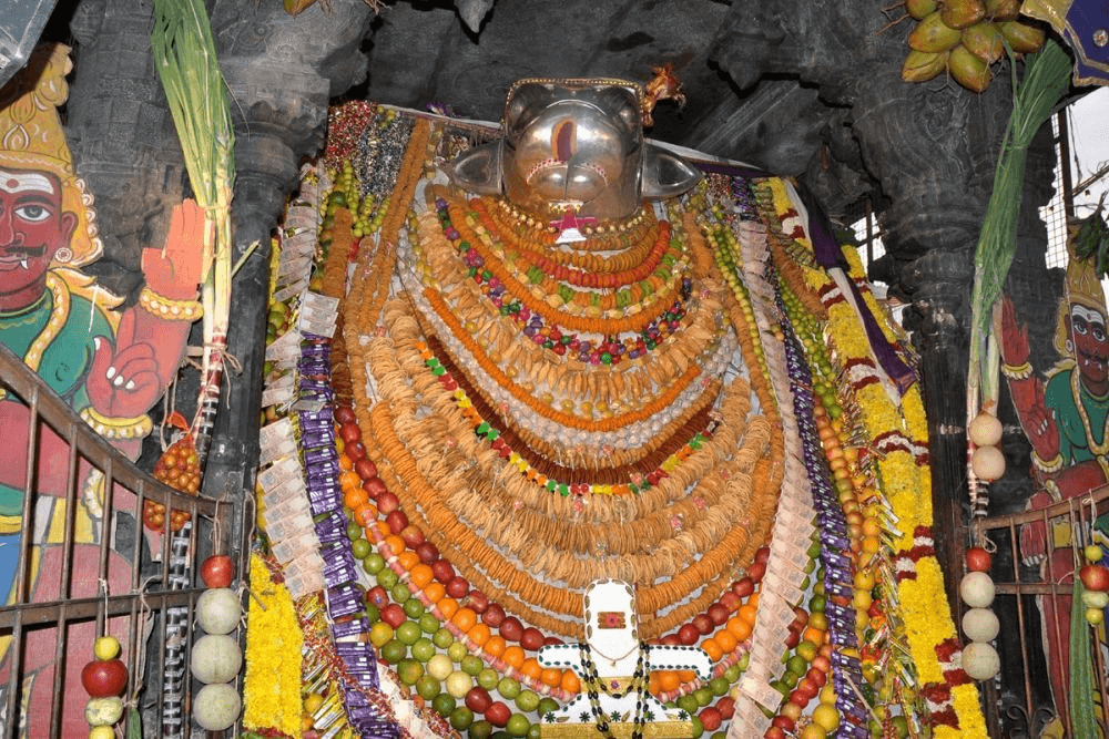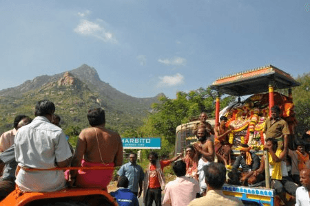 In order to give darshan and blessings to the Sage Bringi, Shiva sets off to perform circumambulation of Arunachala, and thus enrages Parvati who is angry with the sage for his refusal to worship her. Parvati's anger, creates maya (Maya Swarupa), and from that maya emerge thieves who strip Shiva of his ornaments and clothes, whilst he is performing pradakshina. This stripping of Shiva is actually yearly enacted at the same spot (during Voodal Festival) upon the idol that is being carried around the Hill.
