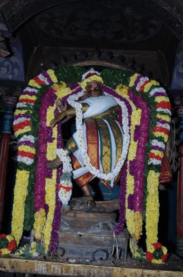 To support the enactment of the 'tiff' between Shiva and the Goddess, emissaries are employed by both to convey messages between the deities and participate in 'brokering a deal' between the feuding couple. The emissary used by Shiva on his behalf is Sundaramurthi Nayanar - a saint feted as a great devotee of Lord Siva and one of the Tamil Samaya Acharyas (four Tamil religious Teachers). His story is included in the famous book entitled Periapuranam. Saint Sambandhar is the other emissary engaged to help conciliate the Divine couple.