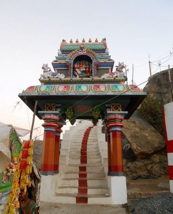Walking to the summit of Parvathamalai via the Thenmadhimangalam route, the walk starts with over 1263 steps from the base of the Hill, which covers the first 30% of the climb.