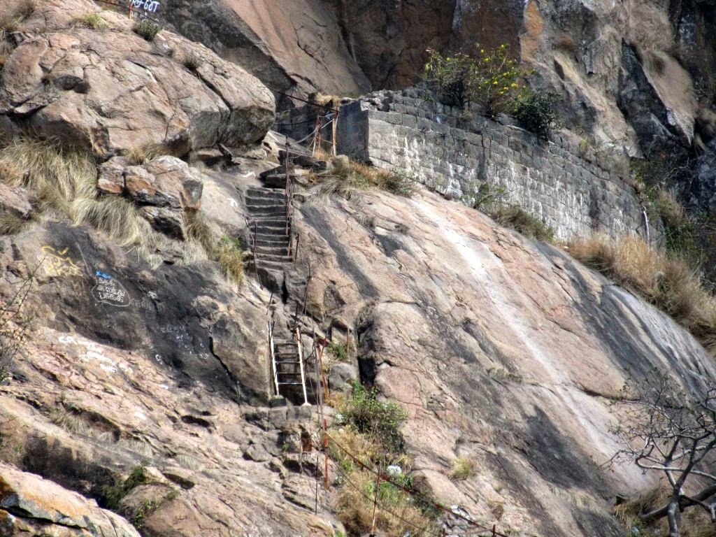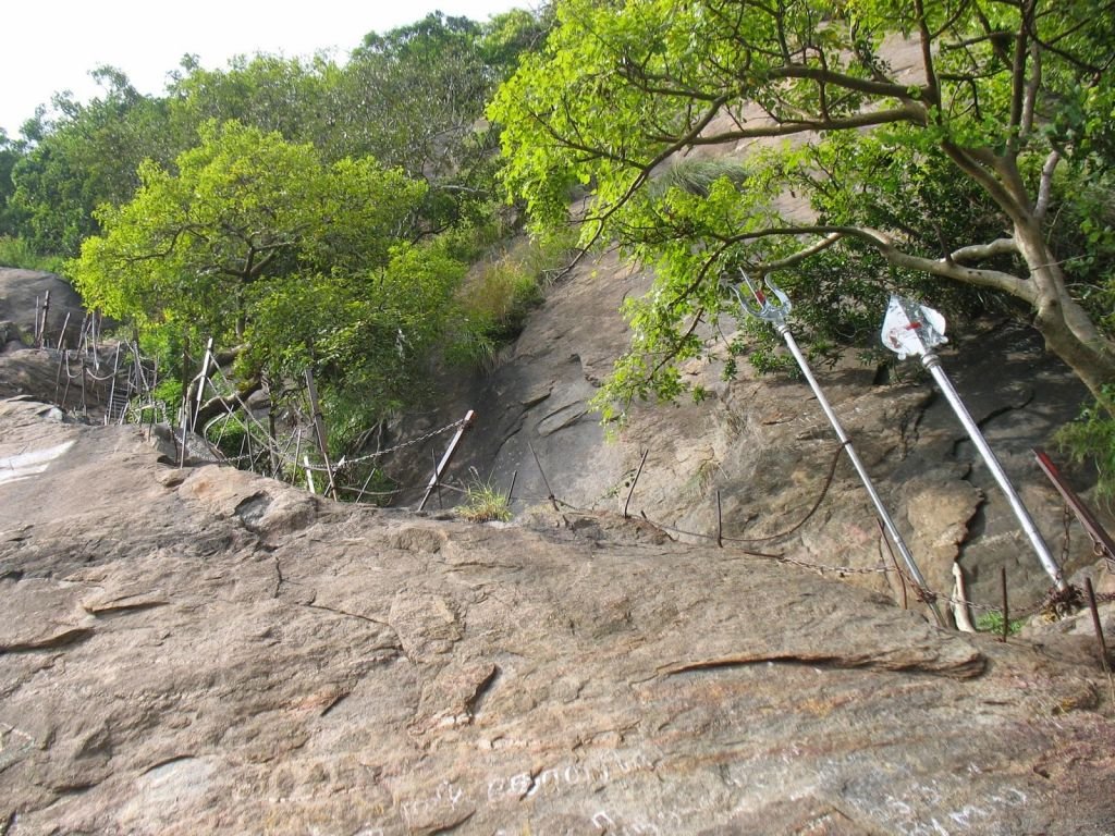 The final section has two different routes for climb up and climb down. The difficult climb up is called 'Kadapparai pathai', with steps carved out of the rock and iron rods planted for support. This path leads to the final steps to reach the mountain top. The climb down path is comparatively easier.