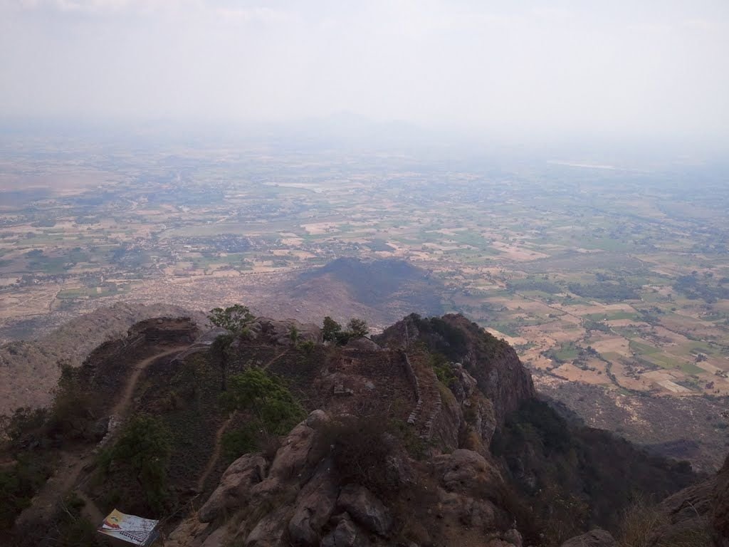 The summit of Parvathamalai overlooks the ruins of what is believed to be the abandoned, deserted fort of King Nannan (son of Nannan).