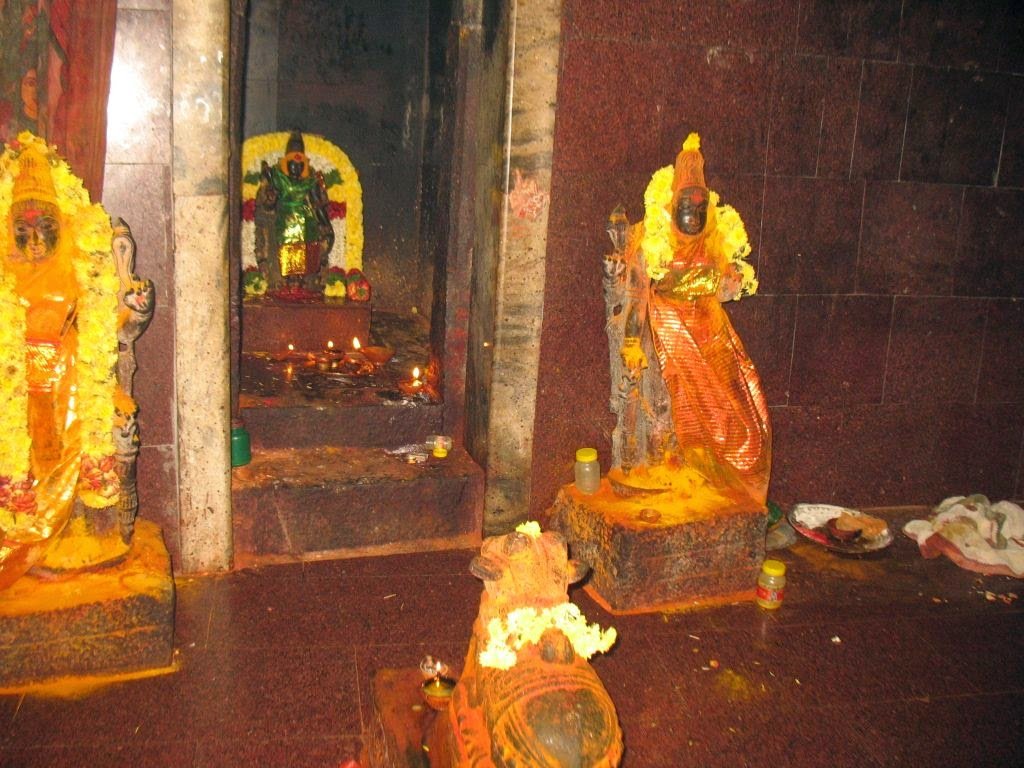 Pleased with Nandi's penance, Lord Siva appeared and made the young child His vahana (vehicle) and passed the order that devotees should come to Him only after attaining admittance from Nandi. Nandi's place of penance at the foot of the hills at Sri Mallikarjunar Temple at Srisailam is also known as 'Nandiyal'. His brother Parvathan also performed penance on Lord Siva and became the hill - Parvatha Hill; i.e. 'Parvathamalai'. As Parvathamalai is equivalent to Sri Sailam Hill, the name of Iraivan becomes Sri Mallikarjunar and Iraivi is now as Sri Brahmarambika.